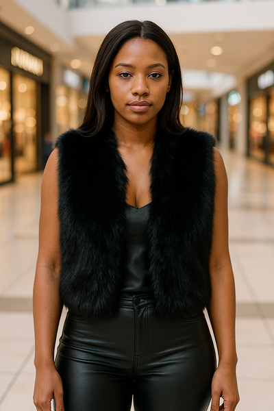 Black Faux Fur Vest – Soft Plush Winter Layer for Casual, Streetwear & Night Out Style