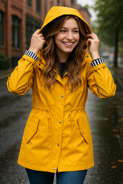 Yellow Waterproof Raincoat with Removable Hood