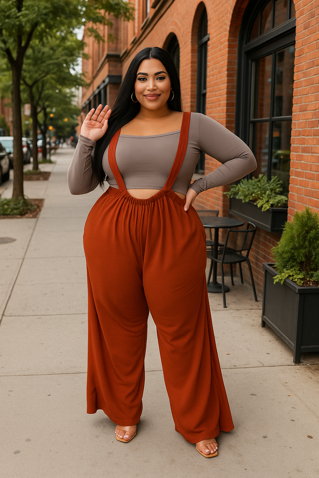 Step into comfort and confidence with our Rust Wide-Leg Suspender Pants, designed to flatter every curve and move effortlessly with your body. Featuring a stretchy high waist, soft breathable fabric, and flowy palazzo legs, this statement piece delivers elevated style without sacrificing comfort. The adjustable suspender straps add a trendy finish — perfect for dressing up or keeping it casual.